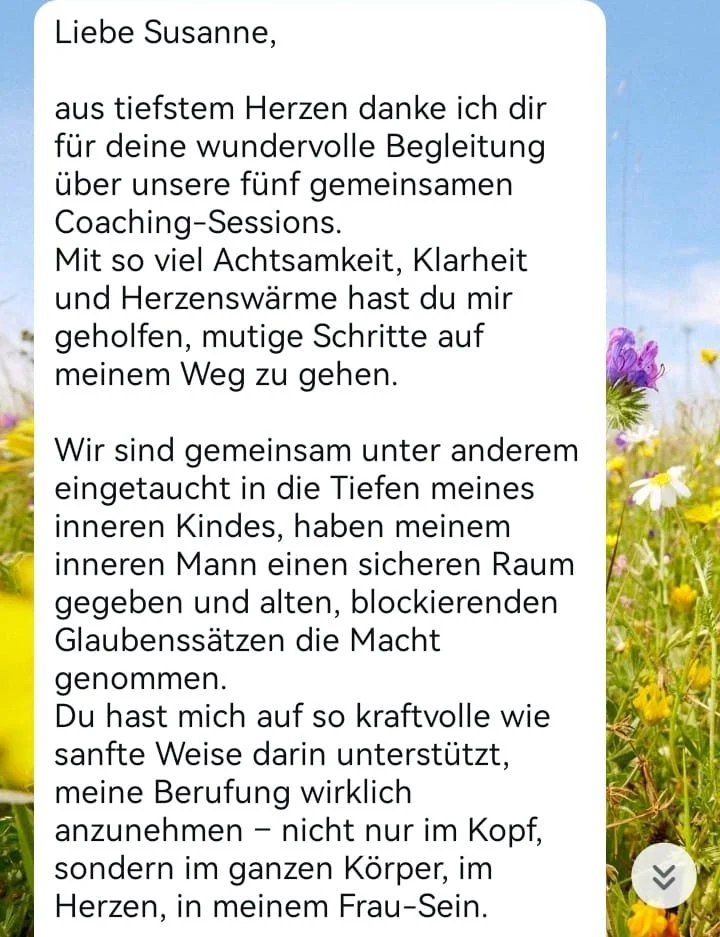 Ein Kennenlerngespräch als Start, in dem ich dir zuhöre, dich spiegele, dich spüre und wir gemeinsam schauen, wo du stehst und was du brauchst.
