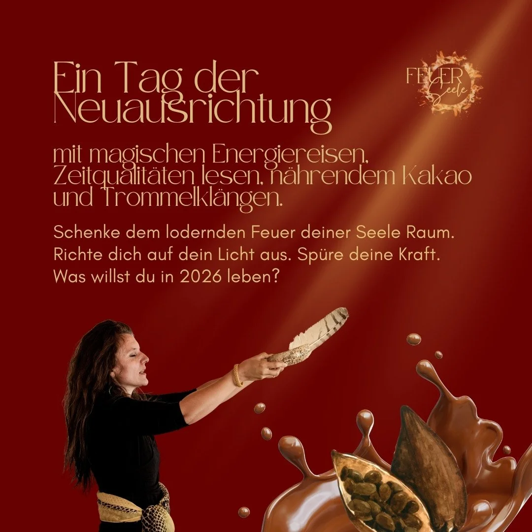 Komme in Verbindung mit dir und deiner Seele, nähre dich mit Kakao und Trommelklängen und richte dich am Feuer kraftvoll aus- auf dein Jahr 2026!